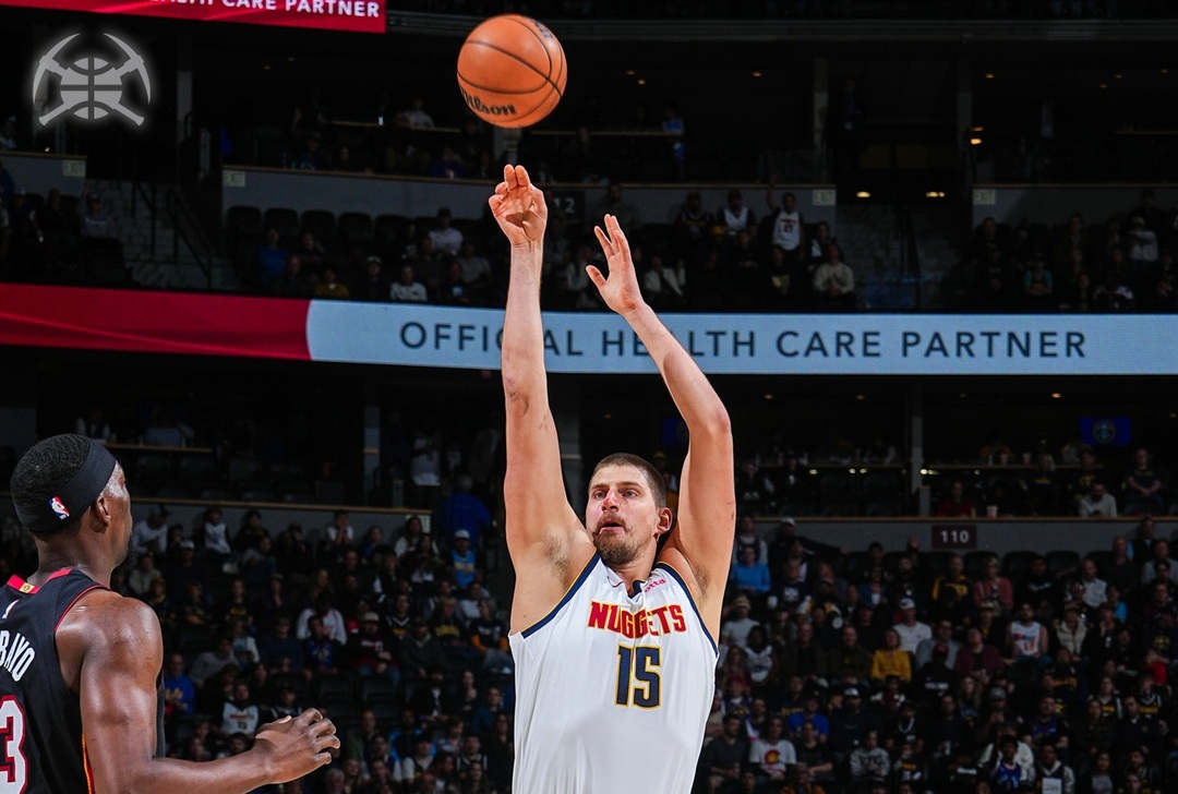 Trostruki MVP trenutačno prosječno bilježi 24.1 poen, 13.4 skoka i 12 asistencija po utakmici. Aaron Gordon dodao je 24 poena za Nuggetse, koji ove sezone imaju savršen domaći omjer – četiri pobjede iz četiri susreta. Kod Miamija su najbolji bili Norman Powell s 23 i Andrew Wiggins s 22 poena, no to nije bilo dovoljno za pobjedu.