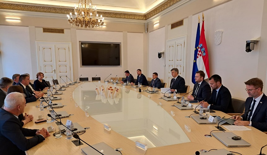 Predstavnici Hrvatske obrtničke komore na čelu s predsjednikom Daliborom Kratohvilom održali su danas u Banskim dvorima radni sastanak s predsjednikom Vlade RH Andrejom Plenkovićem te njegovim suradnicima i ministrima Olegom Butkovićem, Davorom Filipovićem, Markom Primorcem i Šimom Erlićem.