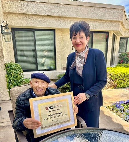 Povodom ove iznimne obljetnice predstavnice Američko-hrvatskog kongresa, predsjednica Nada Pritisanac Matulich i članica Izvršnog odbora Damira Bačić, posjetile su Miljenka Mike Grgicha u njegovom domu u La Quinta. Nada Pritisanac Matulich, predsjednica Američko hrvatskog kongresa (ACC) i članica Izvršnog odbora Udruženja hrvatsko američkih stručnjaka (ACAP) pritom je imala posebnu čast ispred obje organizacije uručiti nagrade za životno djelo gospodinu Grgichu. Nada je također prenijela i posebnu čestitku, pjesmu koja je pristigla za tu prigodu iz Austrije od hrvatskog pjesnika, člana Američko hrvatskog kongresa, Vlade Viskovića, posvećenu 100. rođendanu gospodina Grgicha.
